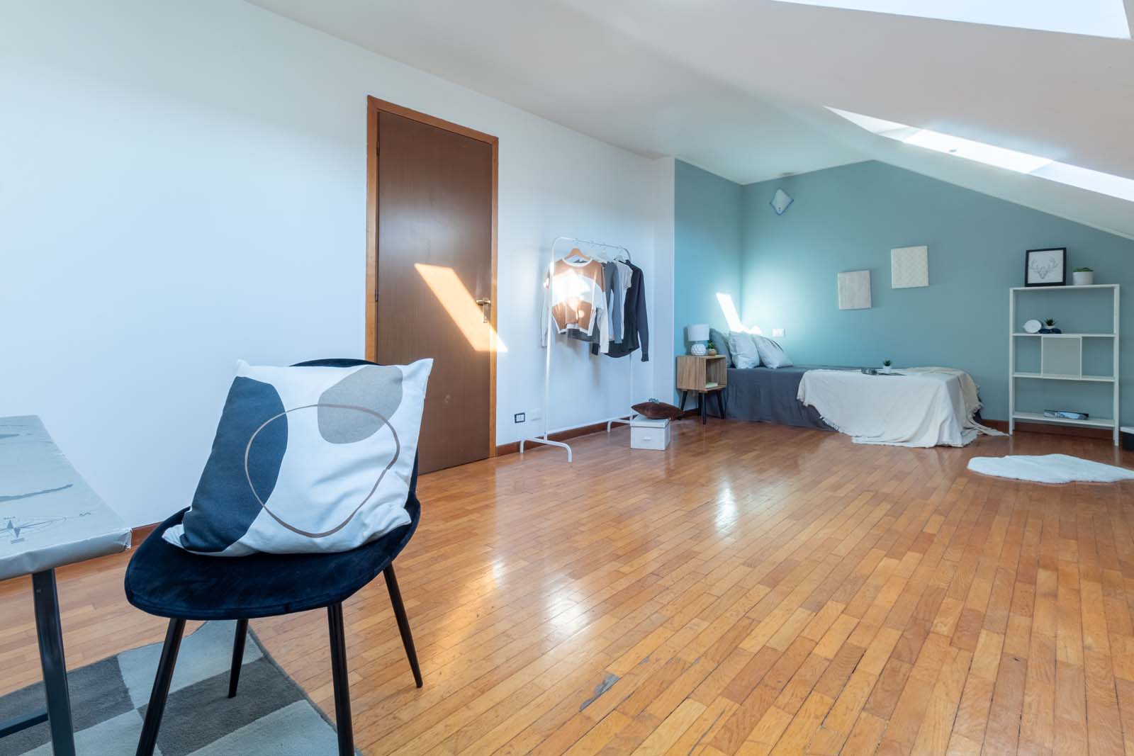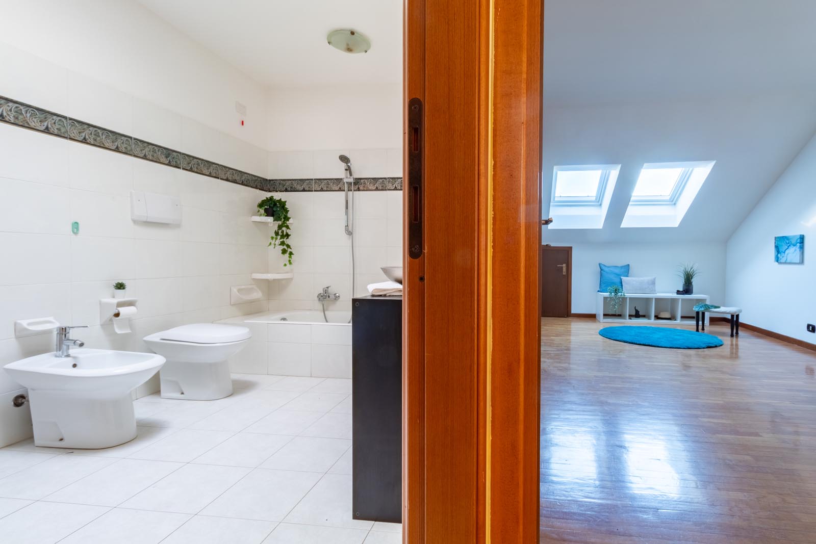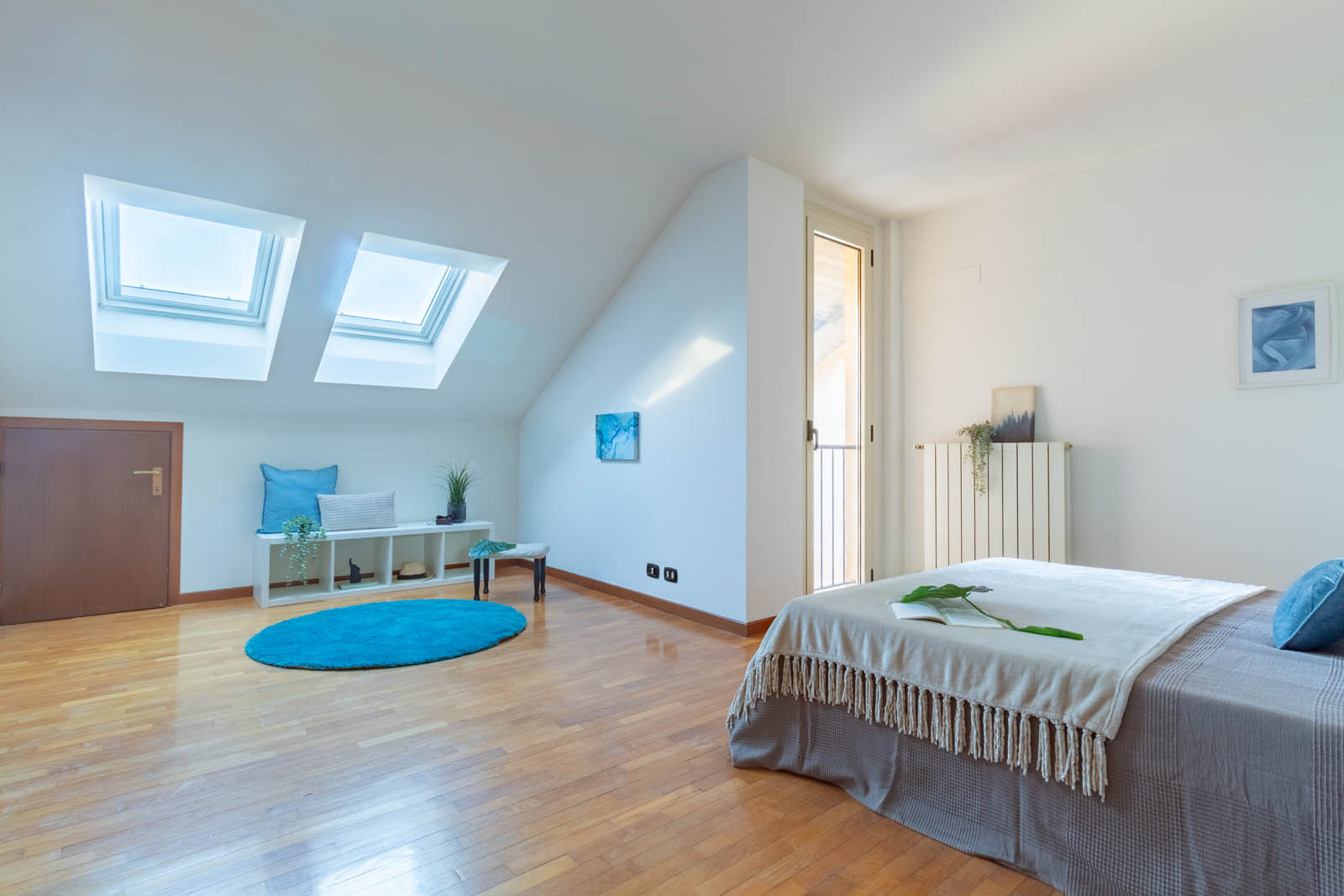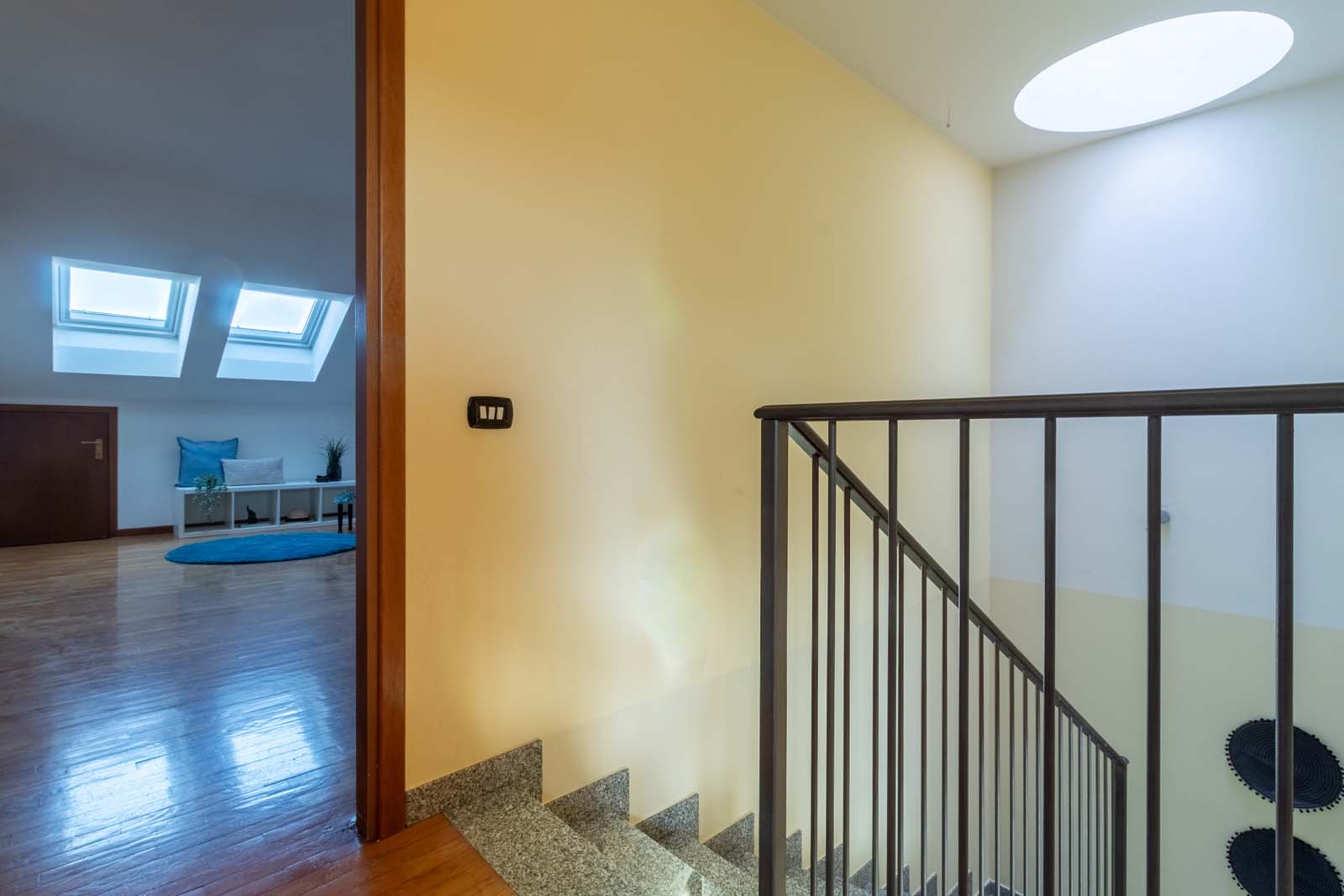 In posizione centralissima e servitissima, in un piccolo contesto realizzato a metà degli anni ’90, al secondo ed ultimo piano (senza ascensore), proponiamo in vendita, pronto subito, un comodo appartamento composto da un ampio living con un piccolo loggiato coperto, una grande cucina abitabile, disimpegno, camera e bagno con balconcino; dal soggiorno si sviluppa una comoda scala rivestita in granito che porta all’ultimo piano (sottotetto) suddiviso in due grandi ambienti, un ripostiglio (ideale cabina armadio) ed un ampio bagno. I metri quadri sono complessivamente 165 ca., ripartiti più o meno equamente tra i due piani. Le spese condominiali, non essendoci perlatro l’incidenza dei costi dell’ascensore, non raggiungono i 1000 euro annui. Il riscaldamento è autonomo. Vi è la predisposizione per l’aria condizionata. L’unità viene venduta senza arredi, con la pertinenenza di un ampio box, doppio in lunghezza. Classe energetica: D – IPE: 72,53 KWh/mq.a.