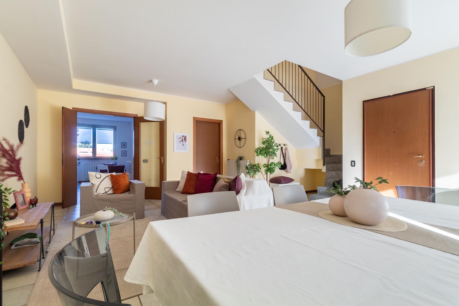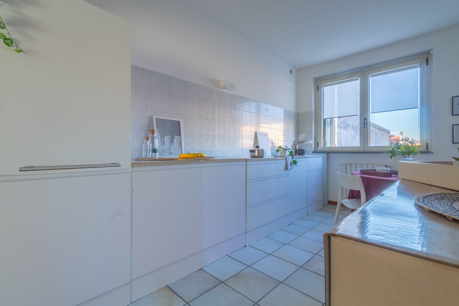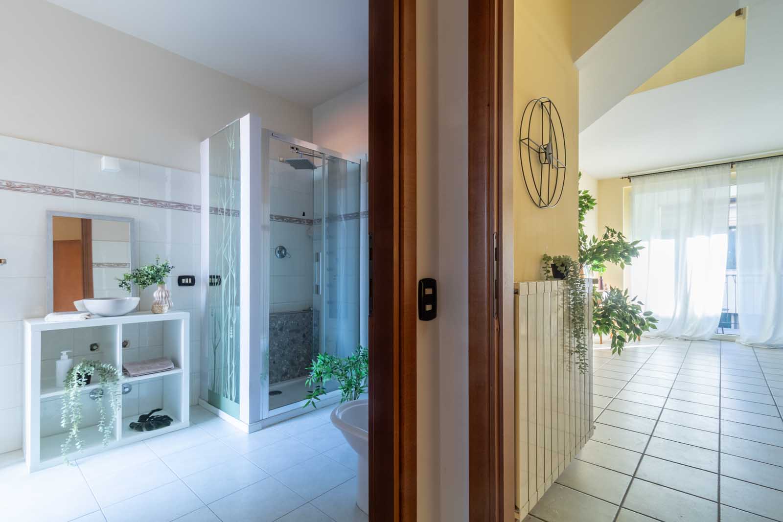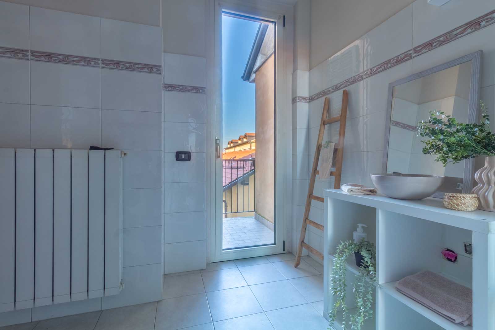 In posizione centralissima e servitissima, in un piccolo contesto realizzato a metà degli anni ’90, al secondo ed ultimo piano (senza ascensore), proponiamo in vendita, pronto subito, un comodo appartamento composto da un ampio living con un piccolo loggiato coperto, una grande cucina abitabile, disimpegno, camera e bagno con balconcino; dal soggiorno si sviluppa una comoda scala rivestita in granito che porta all’ultimo piano (sottotetto) suddiviso in due grandi ambienti, un ripostiglio (ideale cabina armadio) ed un ampio bagno. I metri quadri sono complessivamente 165 ca., ripartiti più o meno equamente tra i due piani. Le spese condominiali, non essendoci perlatro l’incidenza dei costi dell’ascensore, non raggiungono i 1000 euro annui. Il riscaldamento è autonomo. Vi è la predisposizione per l’aria condizionata. L’unità viene venduta senza arredi, con la pertinenenza di un ampio box, doppio in lunghezza. Classe energetica: D – IPE: 72,53 KWh/mq.a.