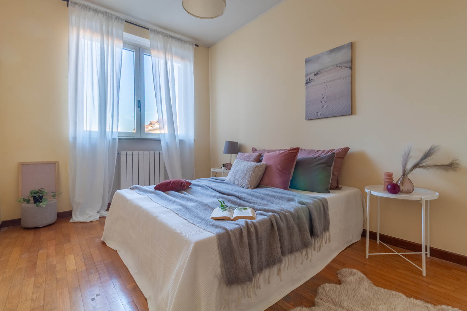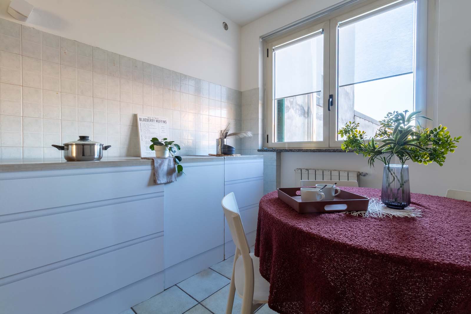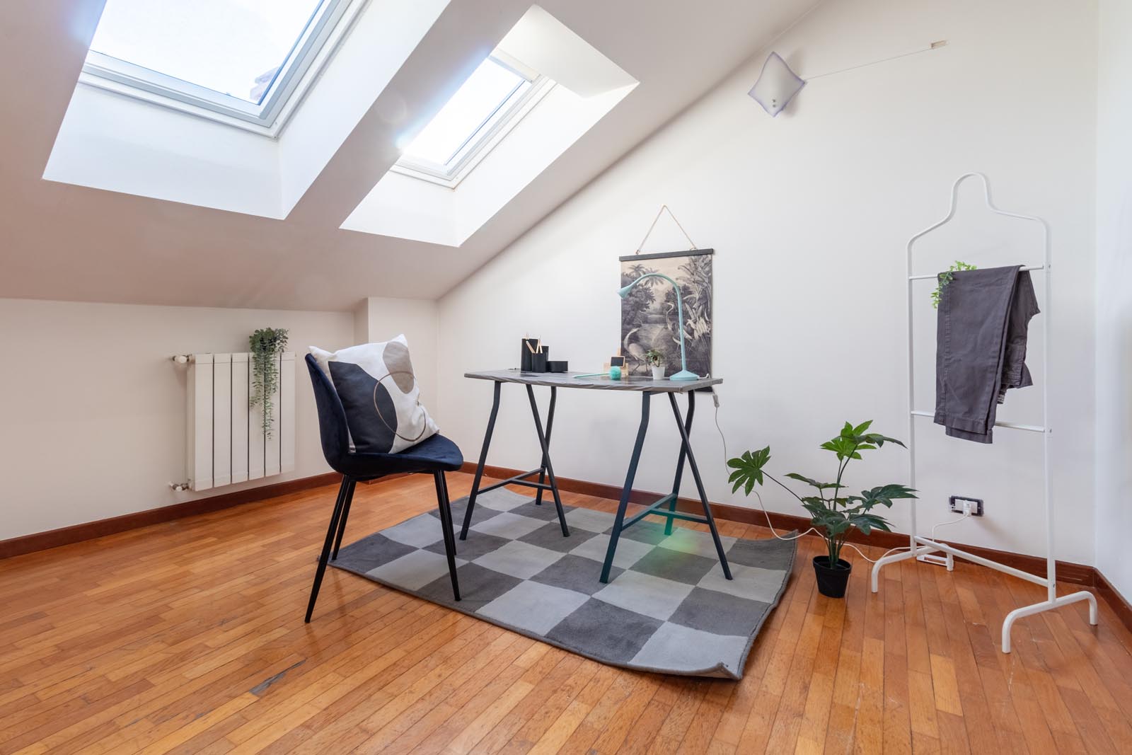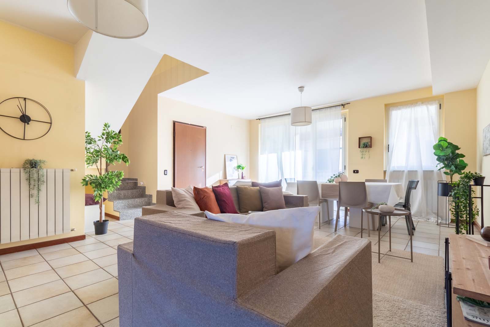In posizione centralissima e servitissima, in un piccolo contesto realizzato a metà degli anni ’90, al secondo ed ultimo piano (senza ascensore), proponiamo in vendita, pronto subito, un comodo appartamento composto da un ampio living con un piccolo loggiato coperto, una grande cucina abitabile, disimpegno, camera e bagno con balconcino; dal soggiorno si sviluppa una comoda scala rivestita in granito che porta all’ultimo piano (sottotetto) suddiviso in due grandi ambienti, un ripostiglio (ideale cabina armadio) ed un ampio bagno. I metri quadri sono complessivamente 165 ca., ripartiti più o meno equamente tra i due piani. Le spese condominiali, non essendoci perlatro l’incidenza dei costi dell’ascensore, non raggiungono i 1000 euro annui. Il riscaldamento è autonomo. Vi è la predisposizione per l’aria condizionata. L’unità viene venduta senza arredi, con la pertinenenza di un ampio box, doppio in lunghezza. Classe energetica: D – IPE: 72,53 KWh/mq.a.