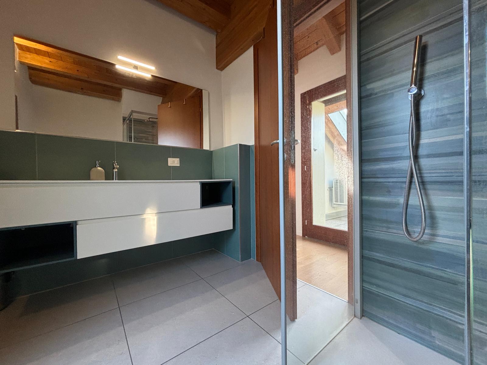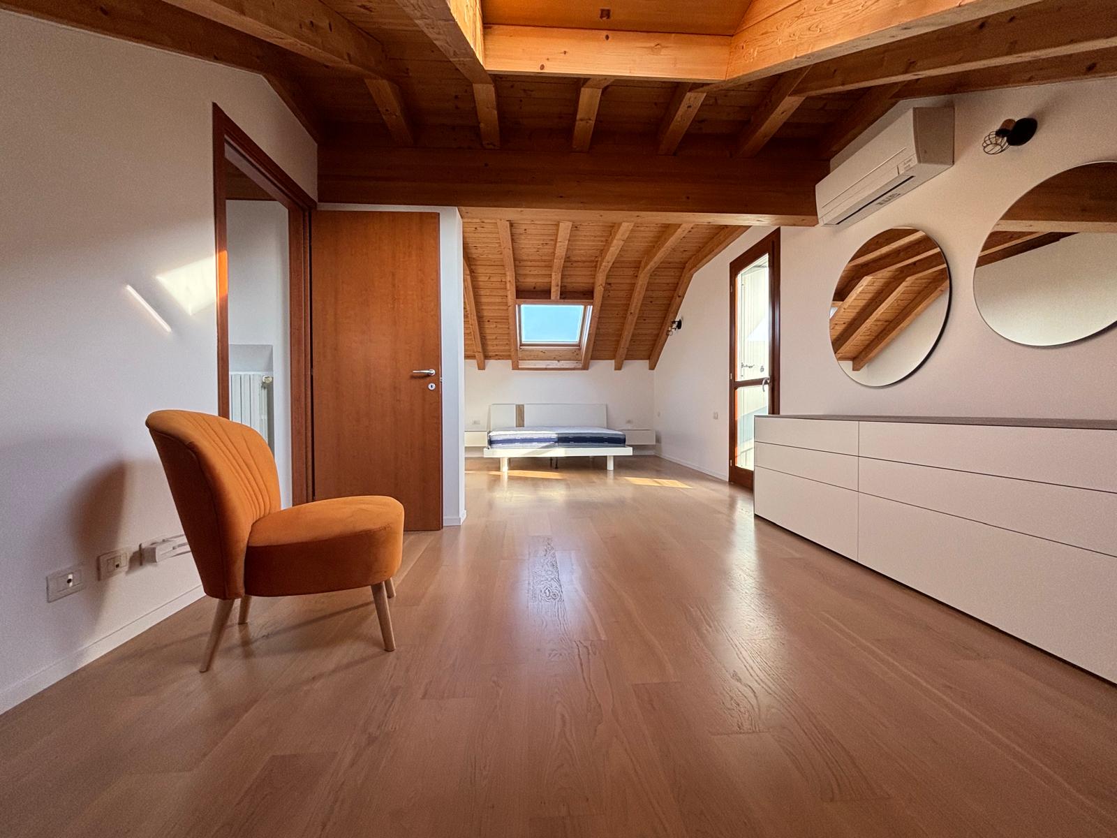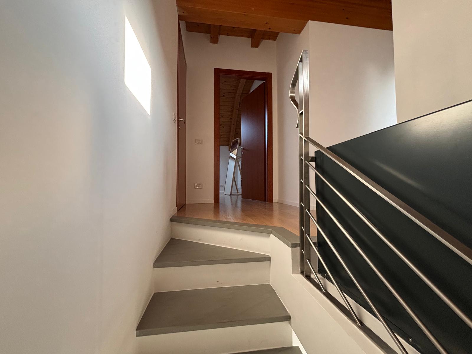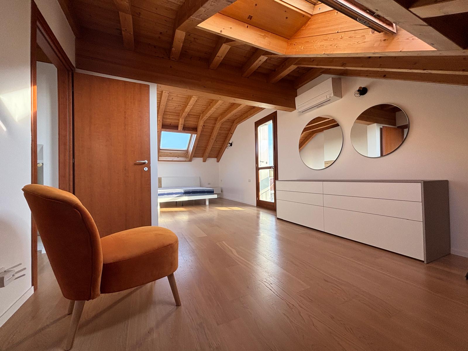 Di recente ultimazione e “COME NUOVO”, inserito in un complesso di due piccole palazzine di 8 appartamenti ciascuna, libero subito, ampio ed elegante appartamento disposto su due livelli (secondo e terzo piano collegati da una comoda scala rivestita in pietra con particolari in acciaio) di circa 180 mq. complessivi con un triplo affaccio così composto: P.2°: grande salone / pranzo, cucina abitabile, lavanderia, camera matrimoniale o studio e bagno padronale; P.3°: ampio sottotetto mansardato con altri due grandi locali (il primo di 36 mq. e il secondo di 13) e una lavanderia / bagno. Balconi su tutti i locali. Grande luminosità ed ottima esposizione. Il piano sottotetto è rifinito con travi in legno a vista e presenta altezze variabili (con una media di quasi 2,40 mt.), ampi velux e comode porte-finestre. Pavimenti: gres di grande formato nella zona giorno e parquet a listoni in mansarda. Impianti: riscaldamento centralizzato con nuova caldaia a condensazione, climatizzazione autonoma completa di macchine esterne e split; antifurto volumetrico e perimetrale. Cantina e ampio box annessi. Possibilità di un secondo box (ad €. 18.000). Classe energetica: D – IPE: 107,70 KWh/mq.a. Il contesto è tranquillissimo, immerso nel verde, comodo con la superstrada Milano/Meda, a circa 1 km dalla Stazione Ferroviaria (FNM e FF.SS.) di Lentate S/S e in prossimità di scuole e del centro cittadino di Meda.