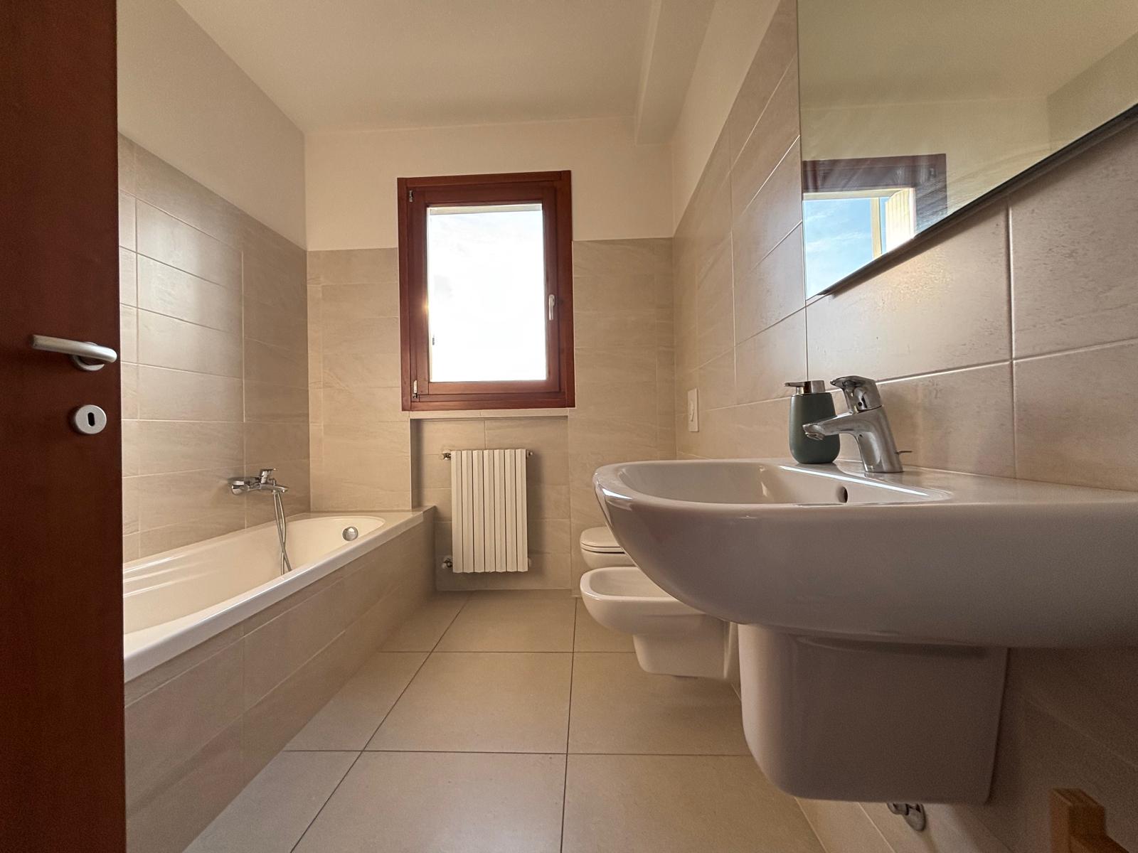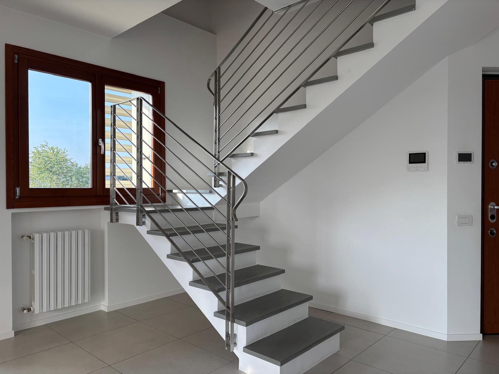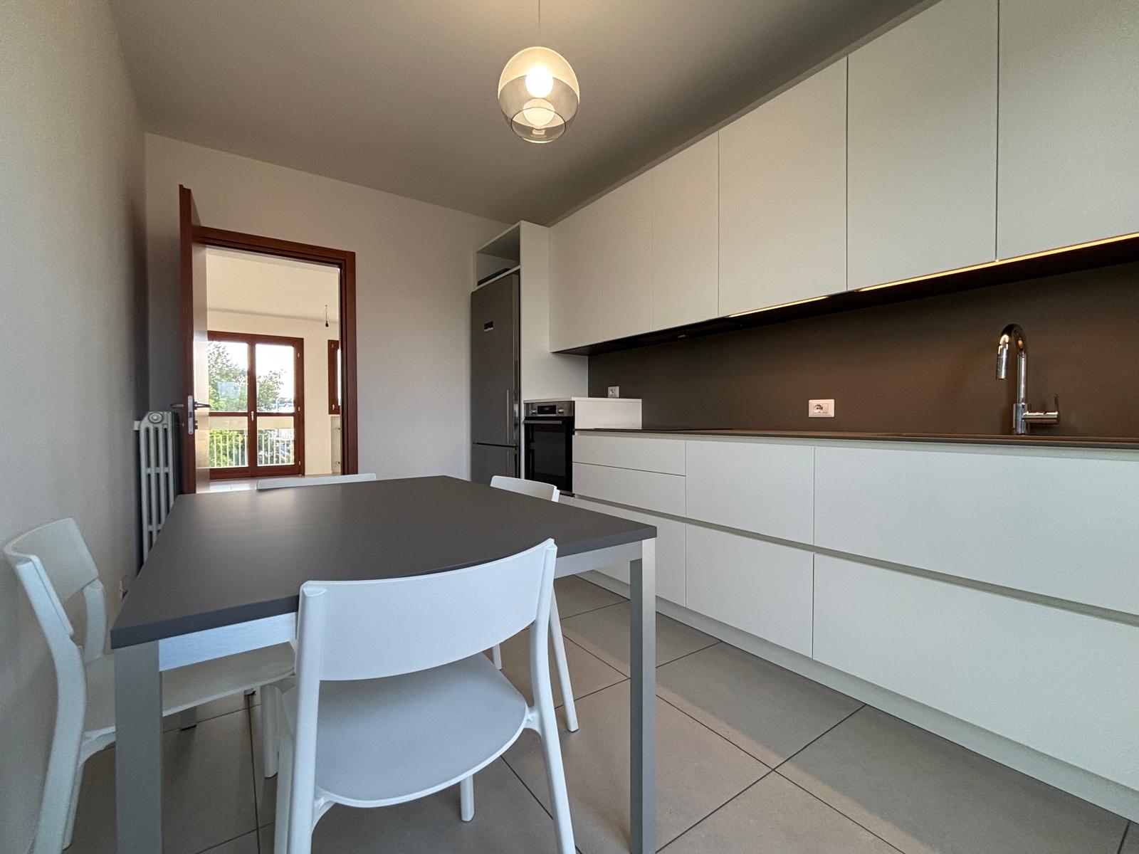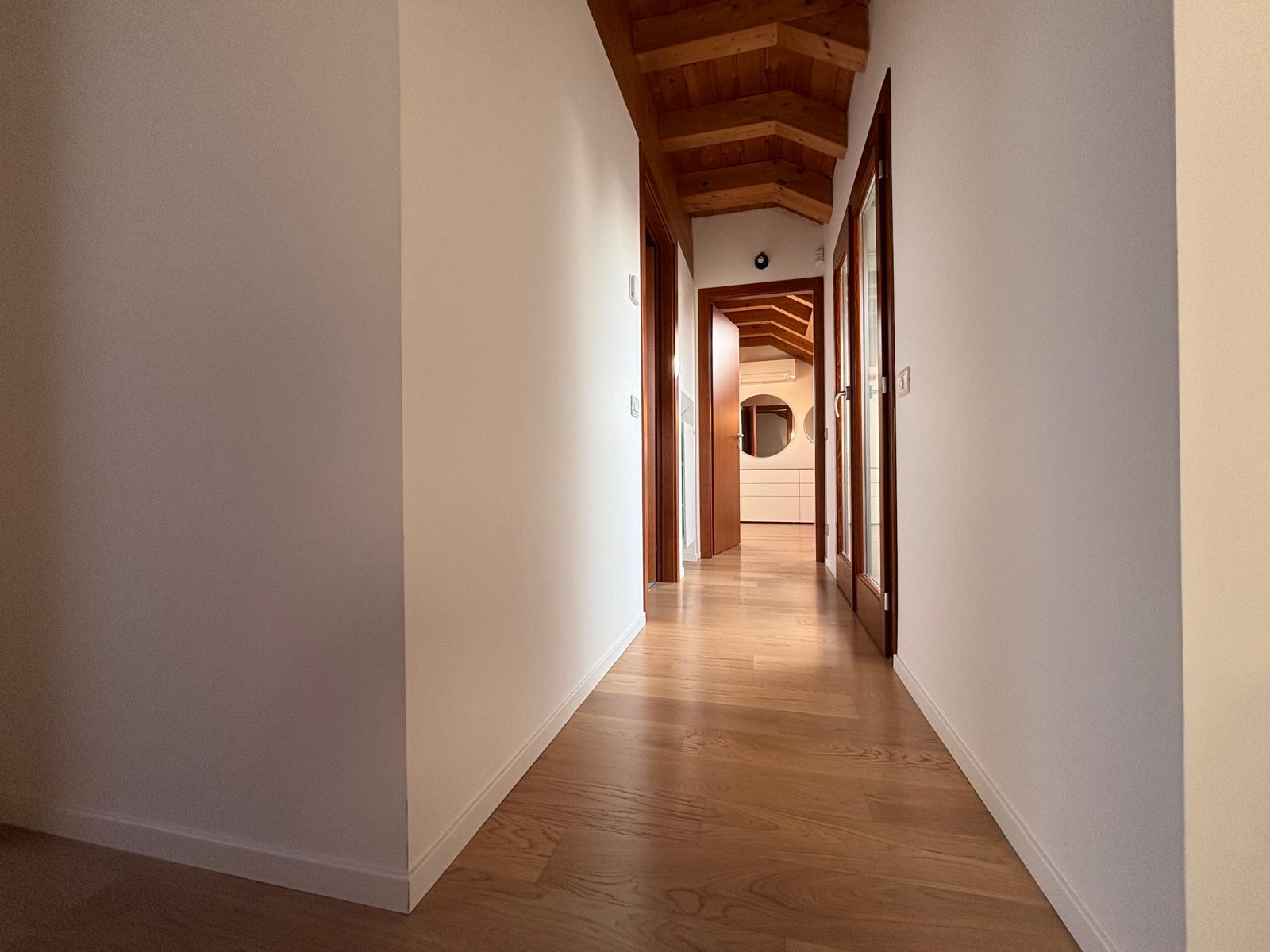 Di recente ultimazione e “COME NUOVO”, inserito in un complesso di due piccole palazzine di 8 appartamenti ciascuna, libero subito, ampio ed elegante appartamento disposto su due livelli (secondo e terzo piano collegati da una comoda scala rivestita in pietra con particolari in acciaio) di circa 180 mq. complessivi con un triplo affaccio così composto: P.2°: grande salone / pranzo, cucina abitabile, lavanderia, camera matrimoniale o studio e bagno padronale; P.3°: ampio sottotetto mansardato con altri due grandi locali (il primo di 36 mq. e il secondo di 13) e una lavanderia / bagno. Balconi su tutti i locali. Grande luminosità ed ottima esposizione. Il piano sottotetto è rifinito con travi in legno a vista e presenta altezze variabili (con una media di quasi 2,40 mt.), ampi velux e comode porte-finestre. Pavimenti: gres di grande formato nella zona giorno e parquet a listoni in mansarda. Impianti: riscaldamento centralizzato con nuova caldaia a condensazione, climatizzazione autonoma completa di macchine esterne e split; antifurto volumetrico e perimetrale. Cantina e ampio box annessi. Possibilità di un secondo box (ad €. 18.000). Classe energetica: D – IPE: 107,70 KWh/mq.a. Il contesto è tranquillissimo, immerso nel verde, comodo con la superstrada Milano/Meda, a circa 1 km dalla Stazione Ferroviaria (FNM e FF.SS.) di Lentate S/S e in prossimità di scuole e del centro cittadino di Meda.