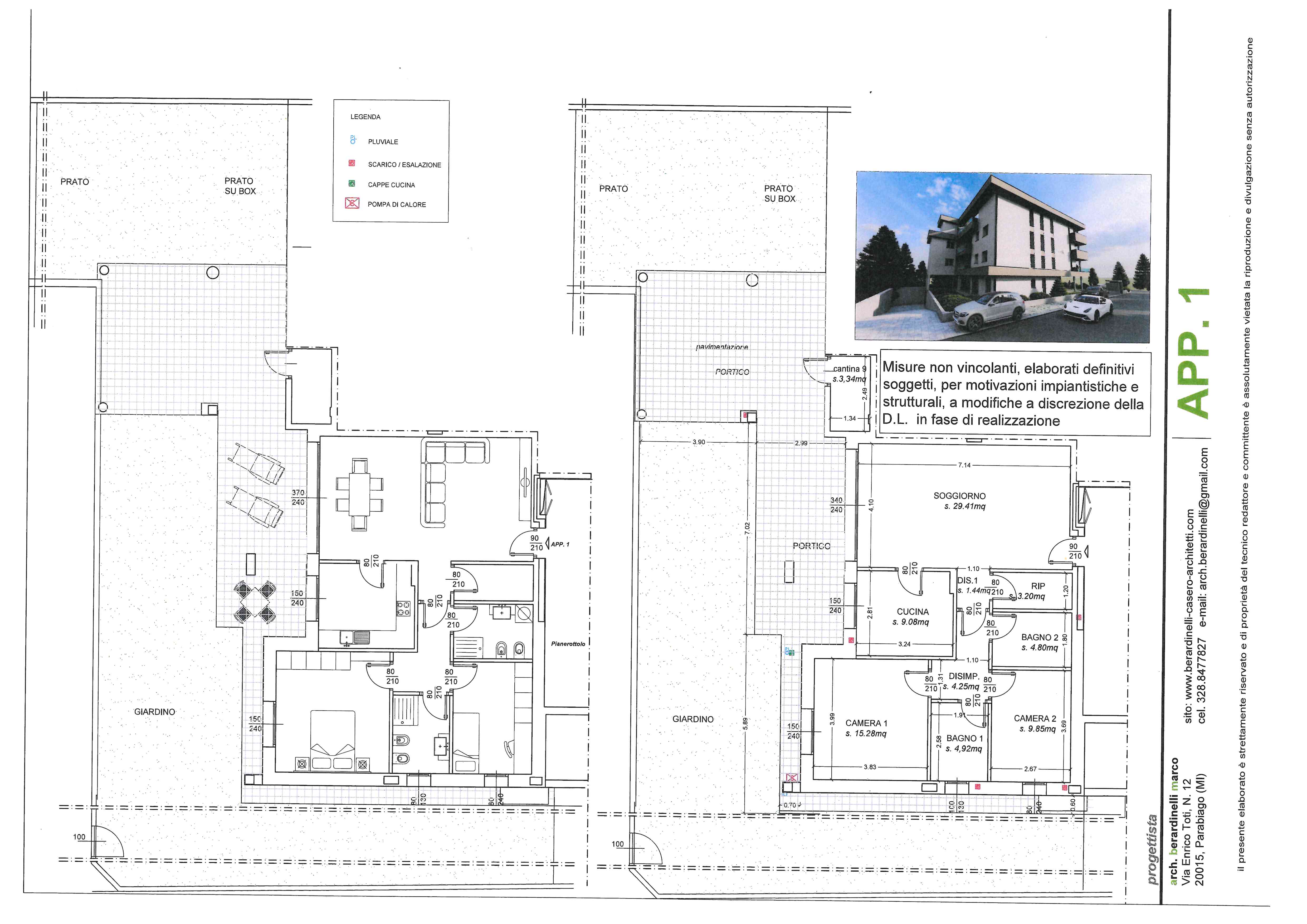 Esempio Prezzo Appartamento “2” €uro 382.000. Possibilità a parte di autorimesse doppie.