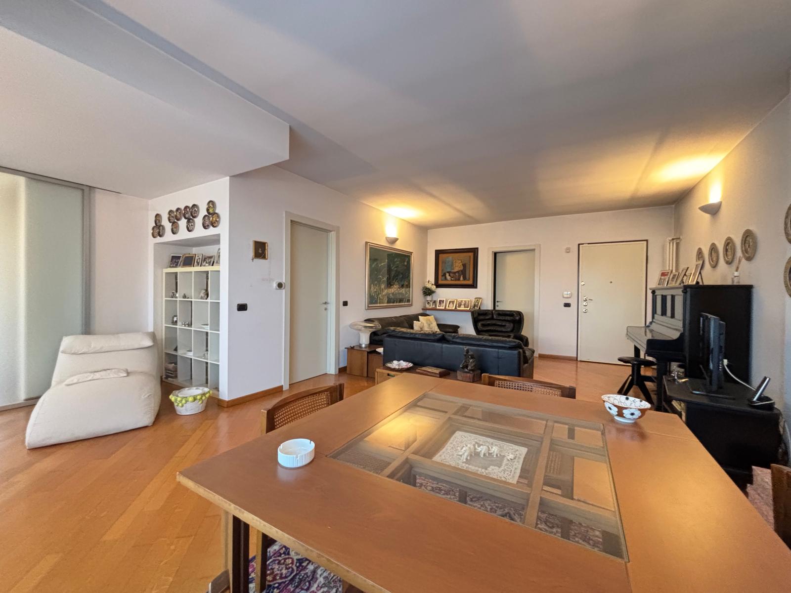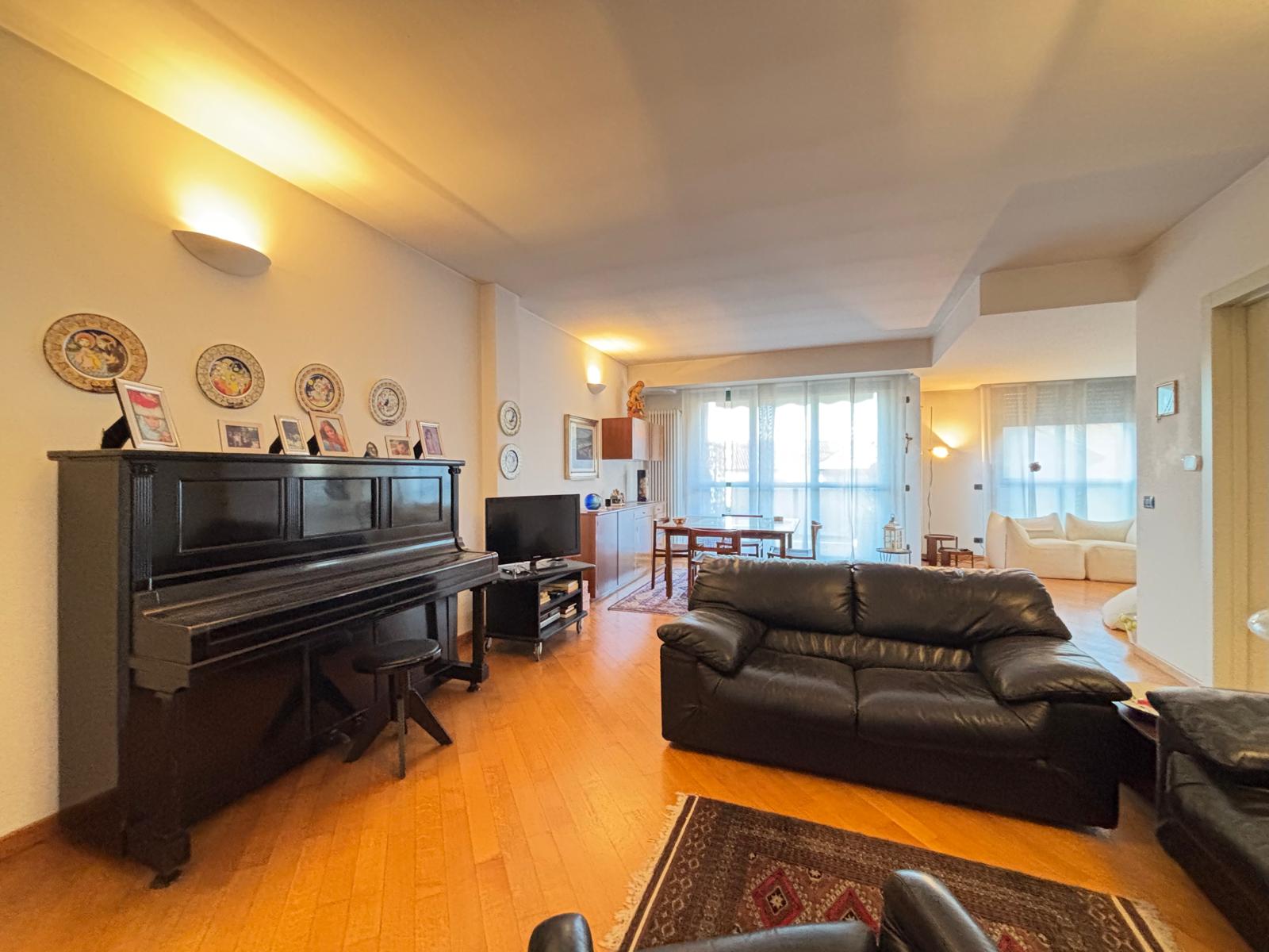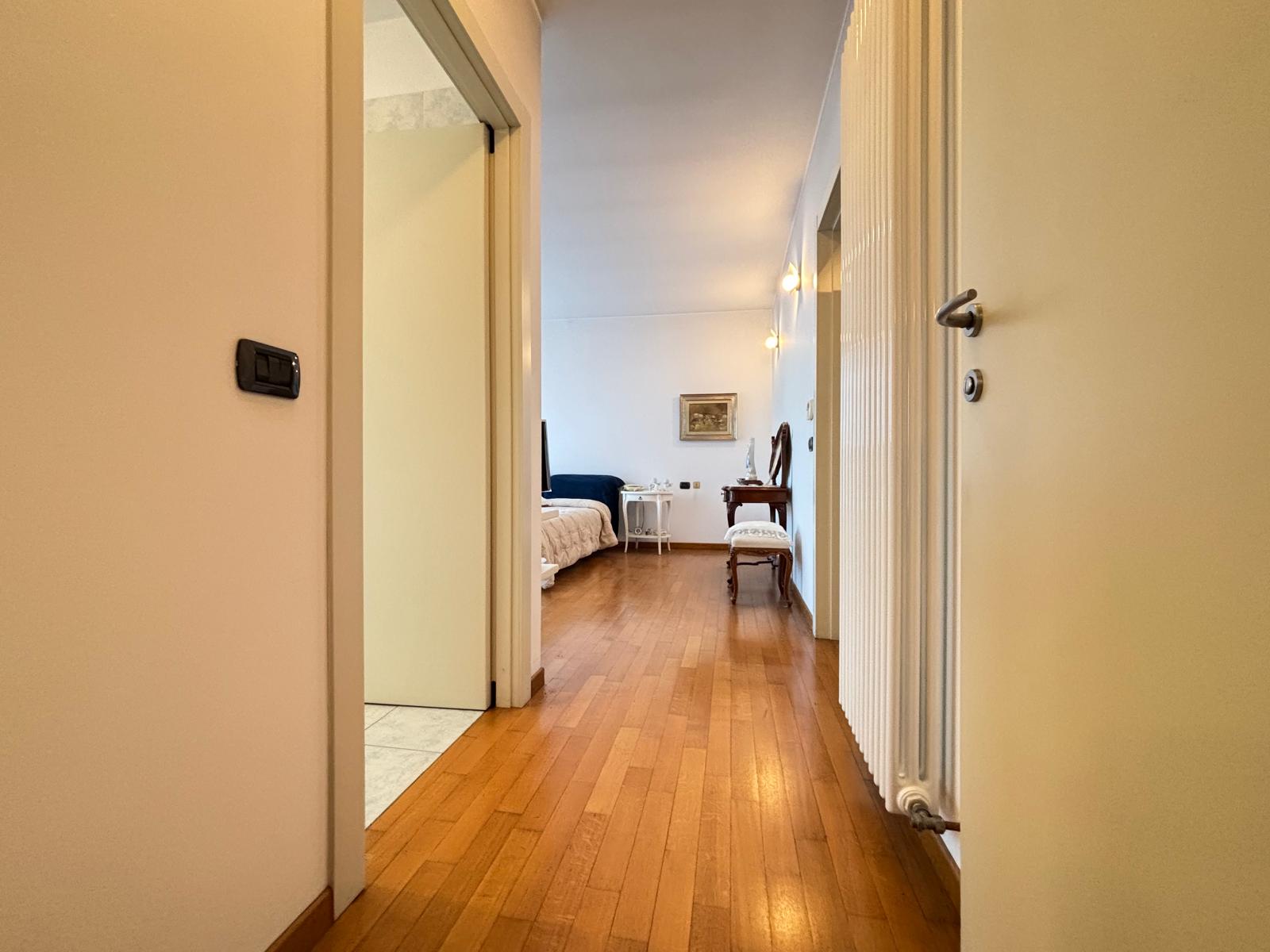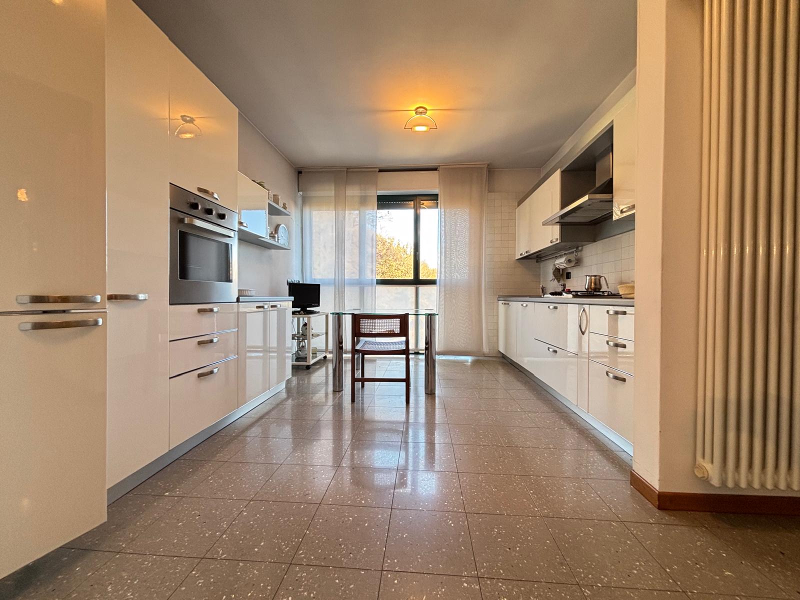 Meda centro, via Matteotti, in ELEGANTE e SIGNORILE costruzione dei primi anni 2000 con facciata rivestita in pietra dorata e mattoni a vista, al terzo piano, il quarto fuori terra, con VISTA sul PARCO di Villa Traversi, proponiamo in vendita un grande trilocale concepito con un ampio living e spazi ben distribuiti. Soggiorno / pranzo, un terrazzino coperto, ampia cucina abitabile, ripostiglio, una comoda lavanderia, una cameretta, un bagno con doccia ed una master room con grande cabina armadio già arredata ed un bagno en suite. L’appartamento, di oltre 150 mq. commerciali, ha il riscaldamento autonomo (con nuova caldaia a condensazione), l’impianto d’allarme, gli avvolgibili motorizzati e presenta finiture ricercate come il parquet posato ovunque (ad eccezione dei servizi) e le porte laccate. Contenute le spese condominiali. L’unità può essere acquistata anche comprensiva di alcuni arredi – molti su misura e di alta qualità – presenti nell’abitazione, “Ready to live”. Nell’interrato, di pertinenza, la cantina ed una comoda autorimessa, doppia in larghezza. In attesa di certificato energetico.
