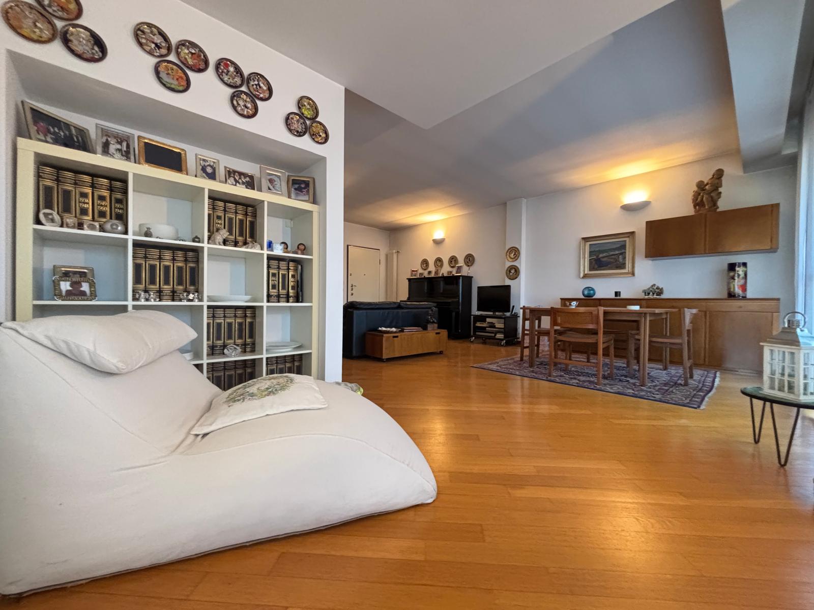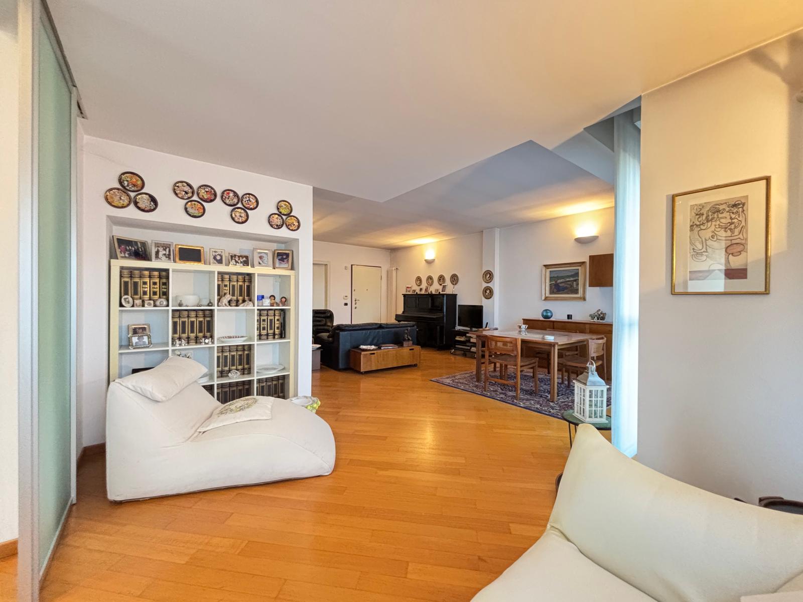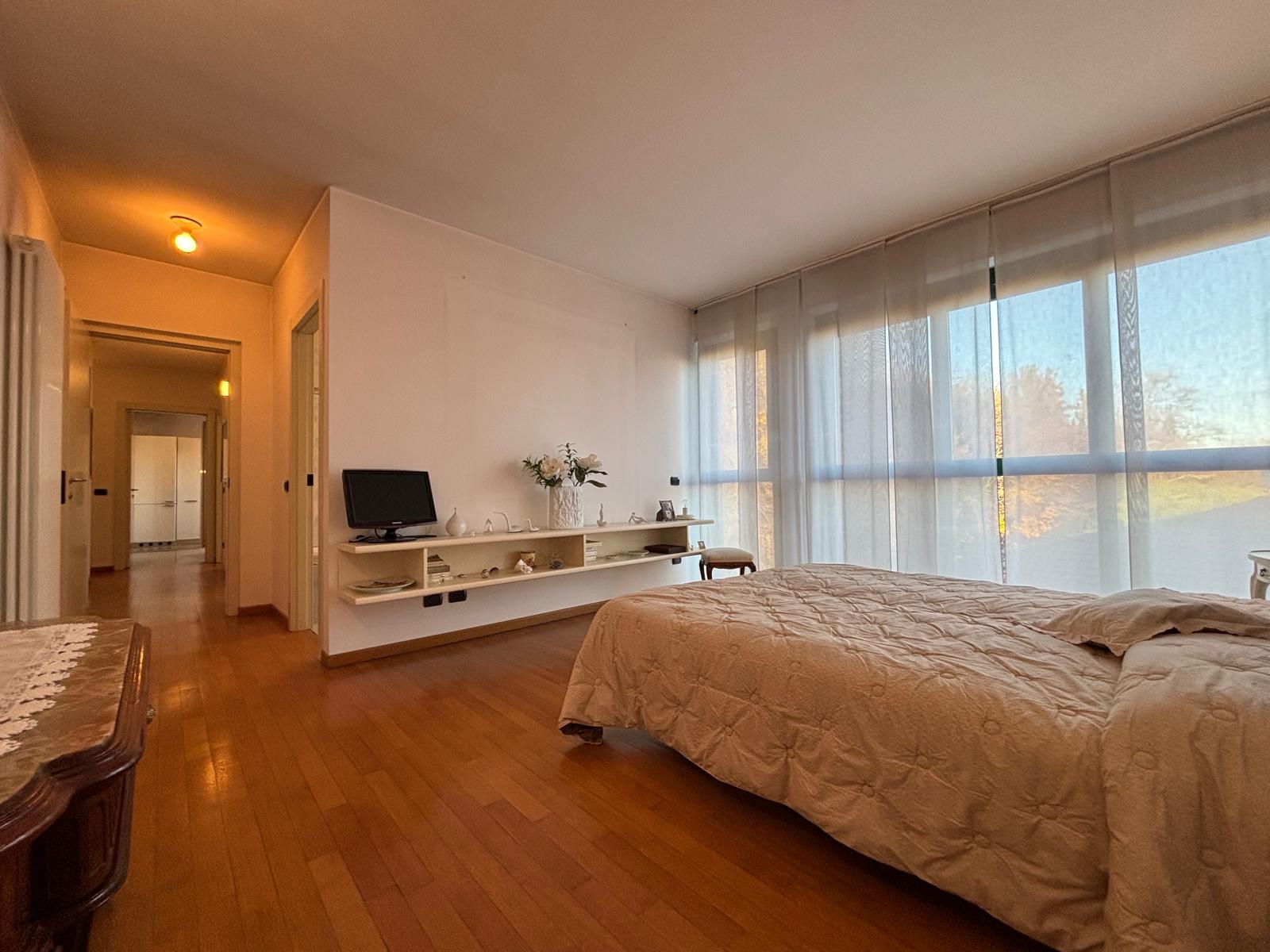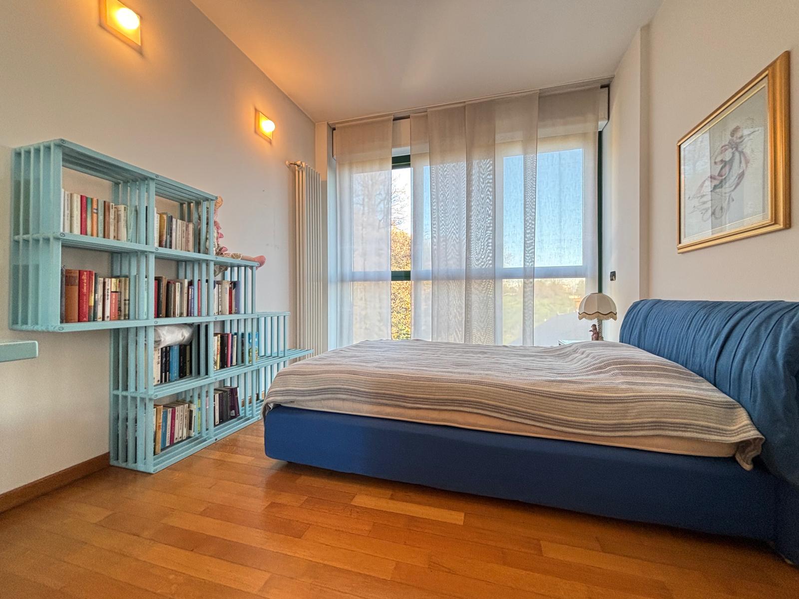 Meda centro, via Matteotti, in ELEGANTE e SIGNORILE costruzione dei primi anni 2000 con facciata rivestita in pietra dorata e mattoni a vista, al terzo piano, il quarto fuori terra, con VISTA sul PARCO di Villa Traversi, proponiamo in vendita un grande trilocale concepito con un ampio living e spazi ben distribuiti. Soggiorno / pranzo, un terrazzino coperto, ampia cucina abitabile, ripostiglio, una comoda lavanderia, una cameretta, un bagno con doccia ed una master room con grande cabina armadio già arredata ed un bagno en suite. L’appartamento, di oltre 150 mq. commerciali, ha il riscaldamento autonomo (con nuova caldaia a condensazione), l’impianto d’allarme, gli avvolgibili motorizzati e presenta finiture ricercate come il parquet posato ovunque (ad eccezione dei servizi) e le porte laccate. Contenute le spese condominiali. L’unità può essere acquistata anche comprensiva di alcuni arredi – molti su misura e di alta qualità – presenti nell’abitazione, “Ready to live”. Nell’interrato, di pertinenza, la cantina ed una comoda autorimessa, doppia in larghezza. In attesa di certificato energetico.