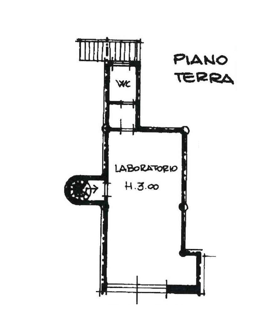 Laboratorio di 52 mq. con altezza mt. 3 posto al piano terra con sottostante magazzino di 34 mq. ed altezza di mt. 2,70 collegato da scala a chiocciola interna (si accede solo dall’interno mediante la scala). Ideale per piccole attività artigianali previa integrazione e ultimazione impianti. Accesso diretto dalla strada con comodo carico/scarico ed entrata di piccoli mezzi (non è possibile salire con mezzi sulla soletta all’interno in quanto non carrabile). Immobile esente da certificazione energetica. Libero.