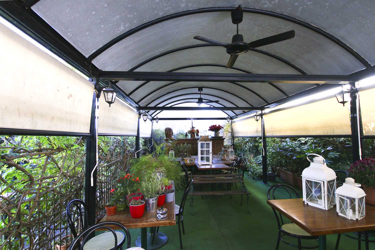 Una veranda esterna consente di servire circa 20 coperti in giardino nella bella stagione.