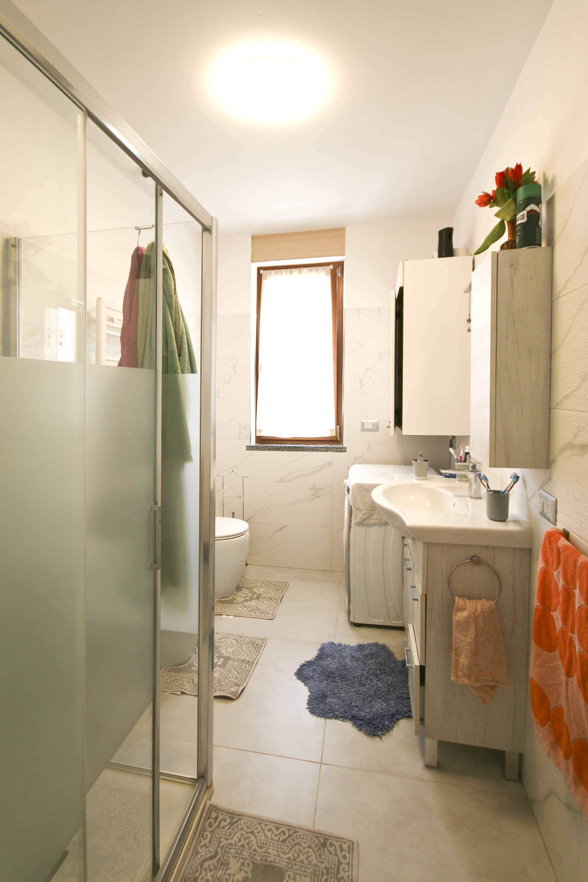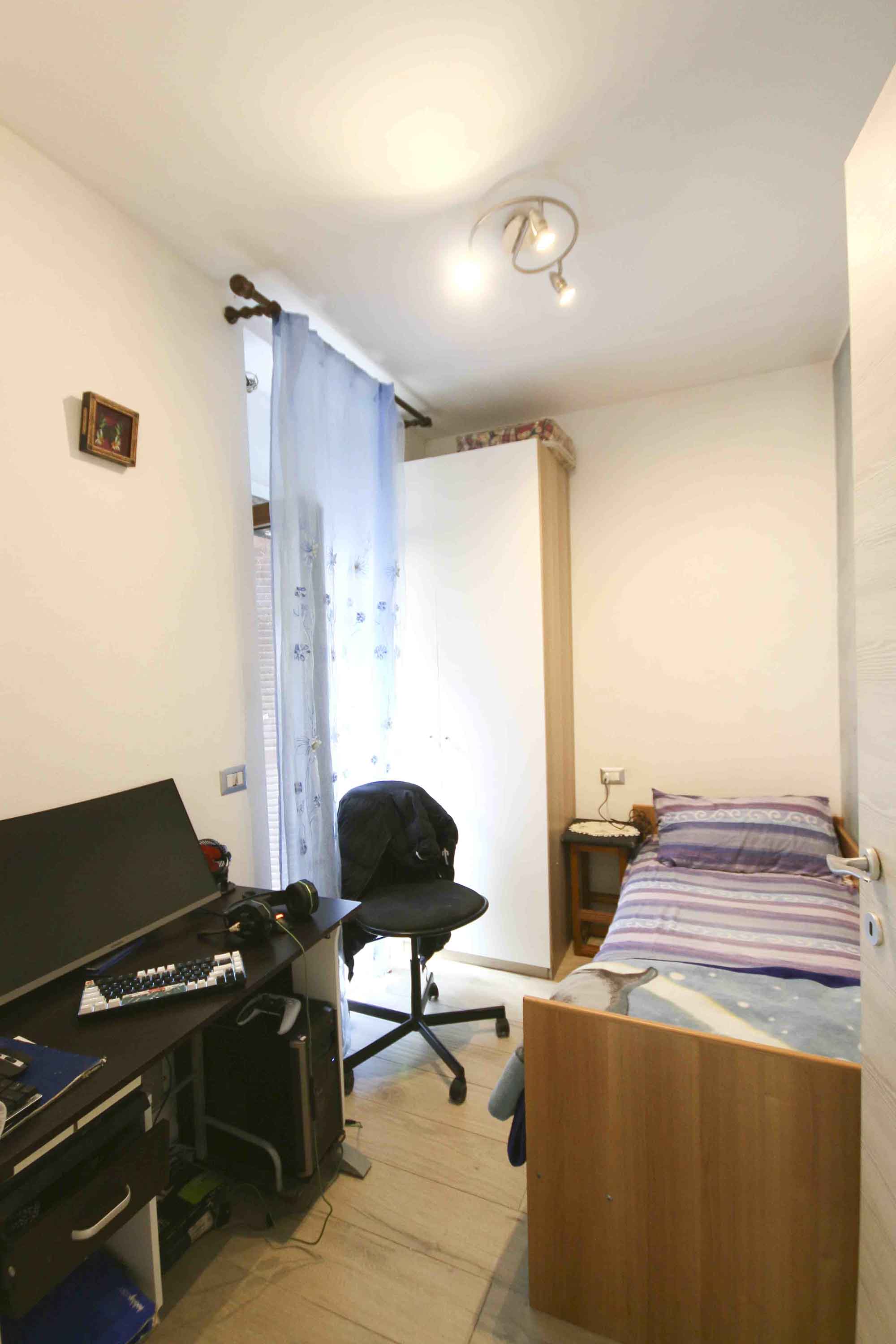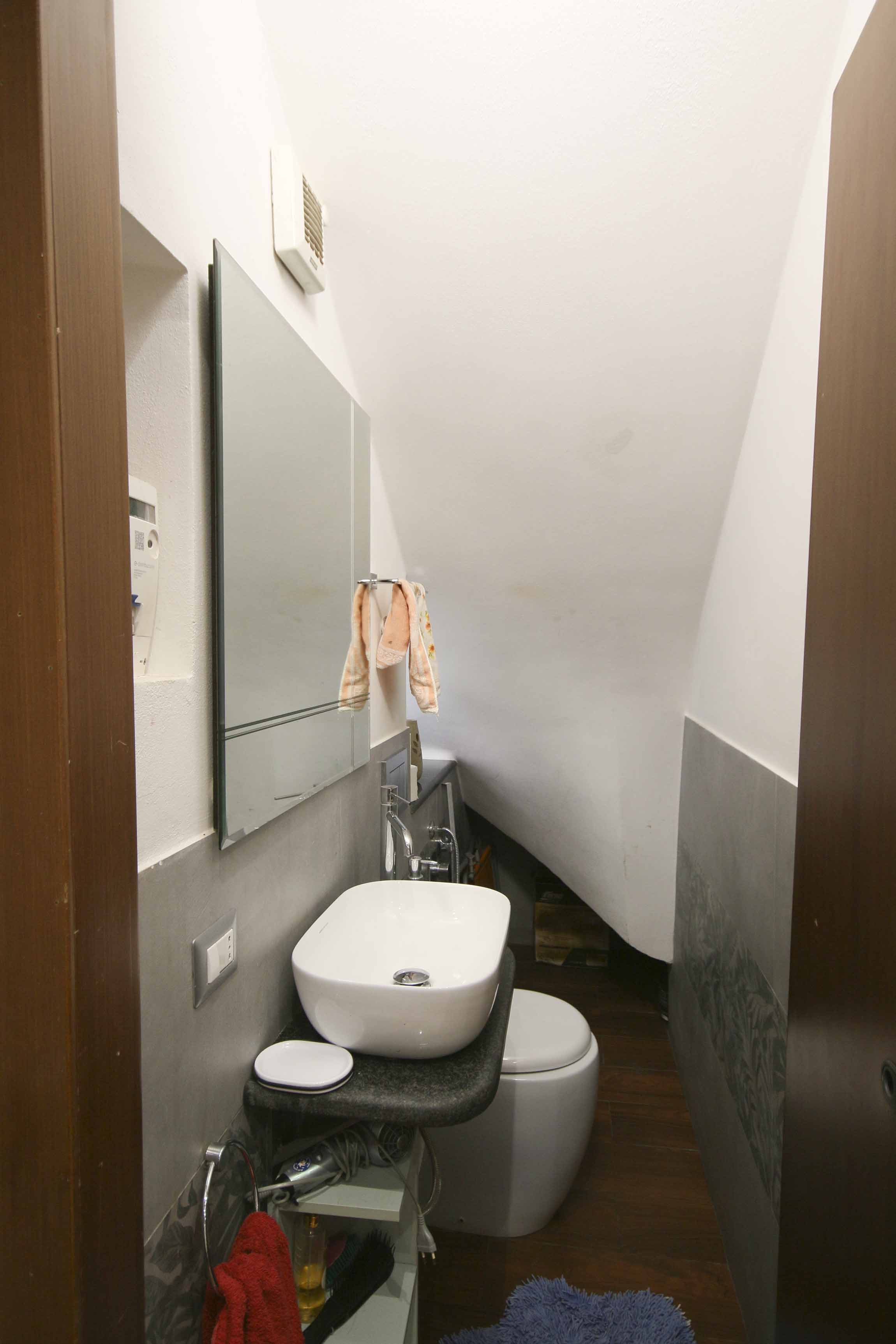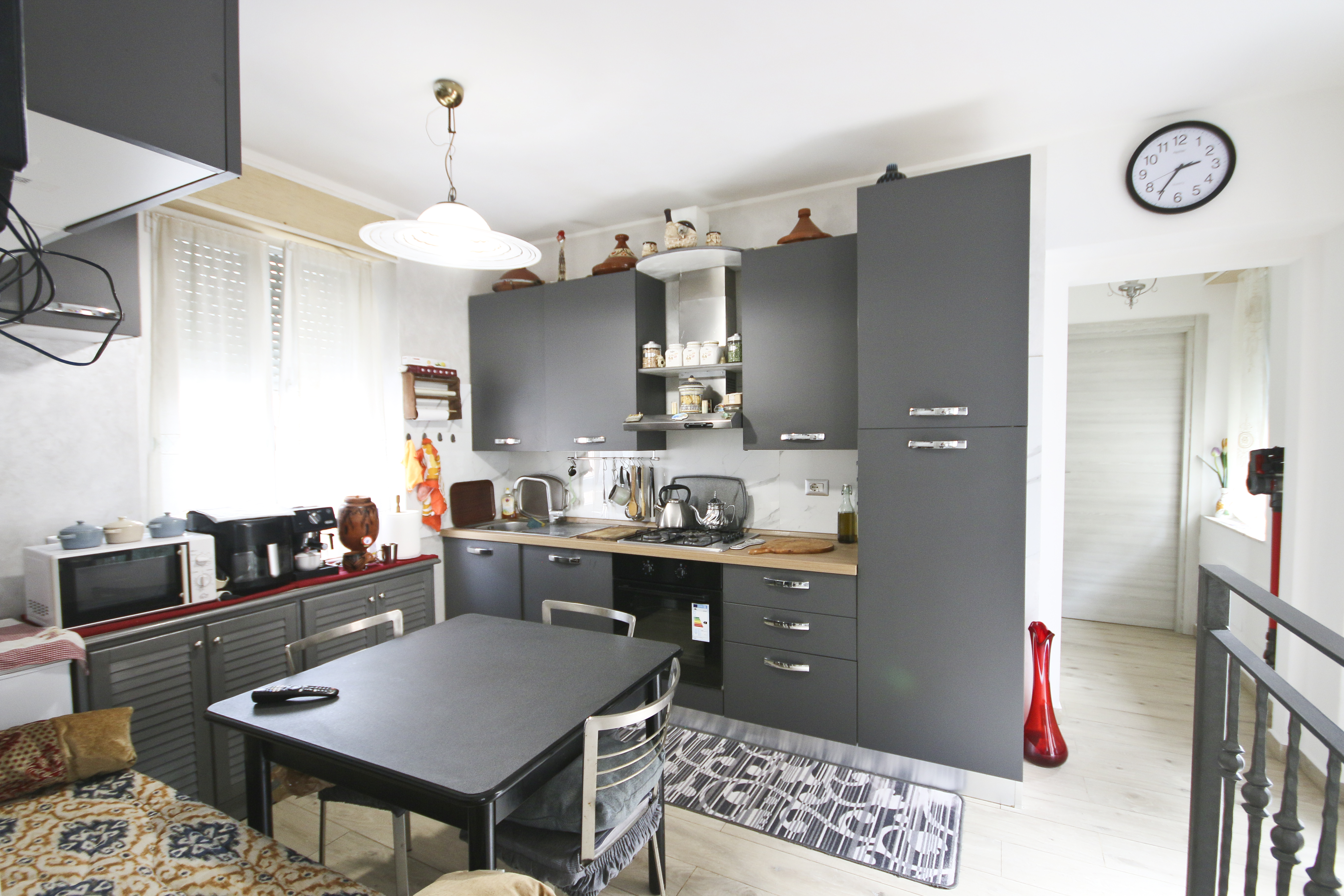 Al piano terreno ingresso al locale soggiorno con piccolo bagno, al piano primo cucina abitabile, camera matrimoniale, bagno, cameretta e locale guardaroba/studio/piccola cameretta. Balcone. Complessivi 98 mq. commerciali. Piccola area esterna in uso con possibilità di parcheggio. Posizione centrale e servita. Libera a breve. In attesa di certificazione energetica.